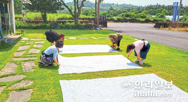 오는 10월 13일까지 매주 수요일 진행되는 이 강좌는 양순자·박용근 천연염색 전문가의 지도로 제주시 한경면 몽생이에서 감물 염색의 기초부터 다양한 생활소품을 만들게 된다.