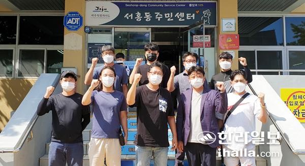 서귀포시 서홍동연합청년회(회장 김법수)는 최근 코로나19 확진자 급증에 따른 확산세 방지를 위해 19일 서홍동 관내 유동인구와 인구 밀집도가 높은 다중이용시설 30개소를 대상으로 방역활동을 전개했다.