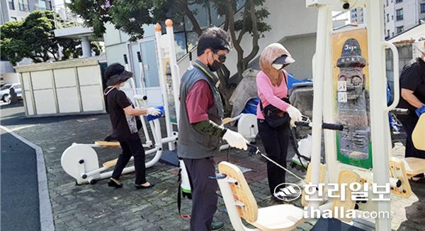 제주시 삼도2동 민속보존회(회장 백영완)는 지난 18일 코로나19 확산을 방지하기 위해 관내 야외체육시설 8개소에 대해 방역을 실시했다. 삼도2동 민속보존회에서는 월 2회 주기적으로 방역활동을 앞으로도 지속 전개해 나갈 예정이다.