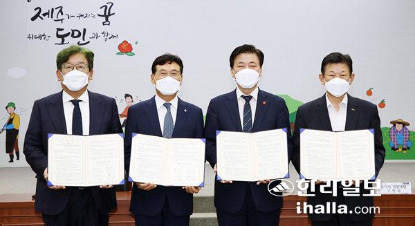 제주도는 19일 도청 탐라홀에서 제주대학교, 제주도개발공사, 제주연구원과 함께 '지하수 분야 전문인력 양성을 위한 업무협약'을 체결했다.
