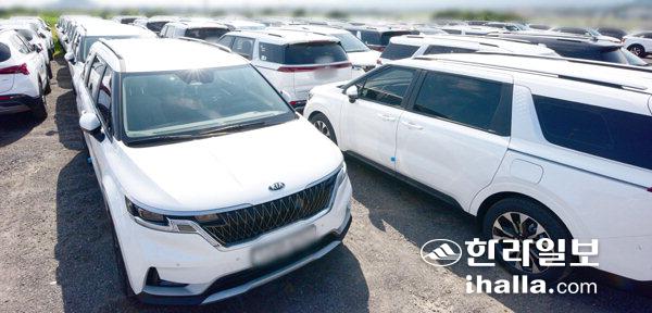 사회적 거리두기가 4단계로 격상되면서 도내 렌터카 예약 취소가 잇따르고 있는 가운데, 19일 제주시 한 렌터카 업체 주차장에 많은 차들이 주차돼 있다. 이상국기자