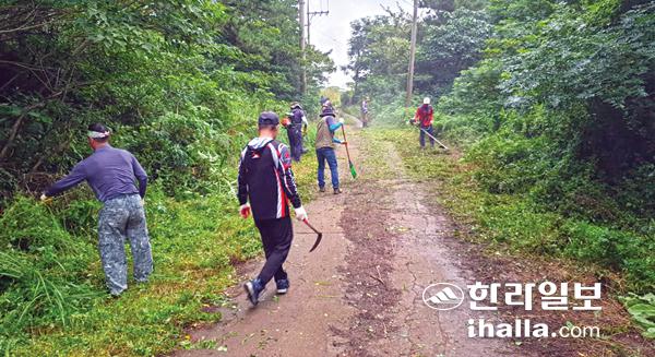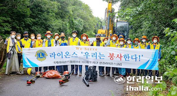 한경라이온스클럽(회장 김기범)은 지난 21일 회원 23명이 참여한 가운데 굴삭기 3대를 동반해 청수곶자왈 진출입로 일대 도로변 풀베기봉사 및 자연정화활동을 실시했다.