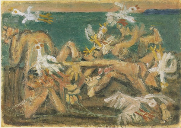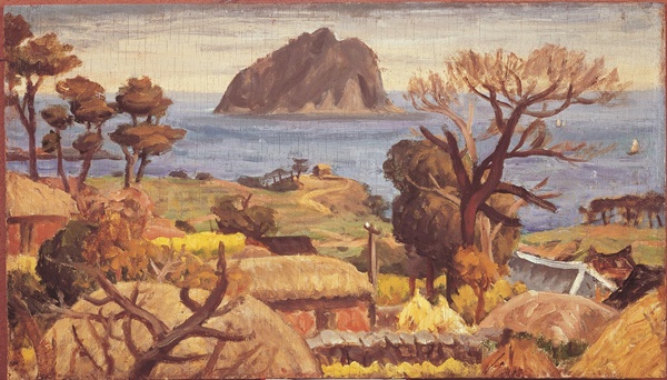 이중섭이 서귀포에서 작업한 유화 '섶섬이 보이는 풍경'은 차분하게 다가온다. 제주4·3이 드리운 크나큰 상처가 아물기도 전에 전쟁의 소용돌이에 휘말린 제주 땅의 참극과 대조를 이루듯 황톳빛 색조가 깔린 서귀포의 마을과 바다는 더없이 평화로워 보인다.