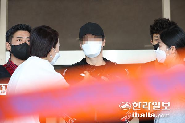 27일 제주동부경찰서에서 검찰로 송치되는 김모(55)씨. 강희만기자