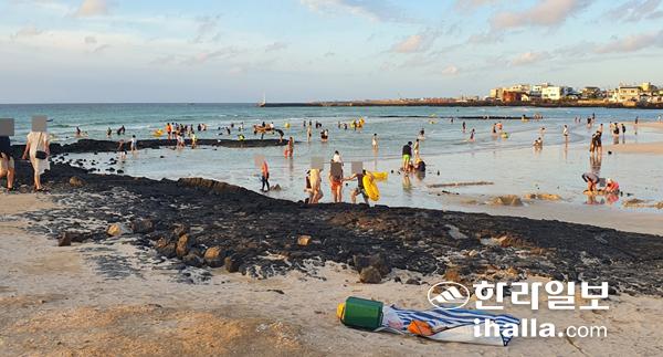 협재해수욕장 인근에 사는 주민 A(56)씨는 "물놀이를 끝낸 후 마스크를 벗은 채 주차장이나 인근 길목을 지나다니는 경우가 많다"며 "지역 주민들만 거리두기를 지킨다고 다가 아니다. 확산세도 심상찮은데 도민들만 피해를 보고 있어 정말 답답하다"고 토로했다.
