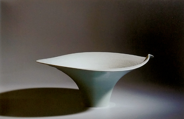 제주 바다의 색을 닮은 청백색 백자 작품도 볼 수 있다. 깎거나 자르지 않고 점토가 지닌 물성을 이용해 원형 기물의 모양을 변형한 작품들로 제주 바다 일렁이는 물결을 형성화했다. 바람에 따라 흩날리는 비의 모습을 반복적인 선으로 새기다보니 어느새 물이 되었고 그 물은 달빛에 반짝이는 바다가 되었다.