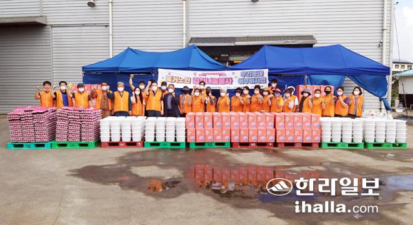 이번 행사를 위해 신협 임직원과 부녀회원들은 최근 5일동안 코로나19 방역지침을 준수하면서 김치를 담갔고, 이날 배추김치 700포기, 계란 400판, 생필품(어부바 박스 400개)을 혼자사는 노인가정을 방문해 전달하는 봉사활동을 벌였다.