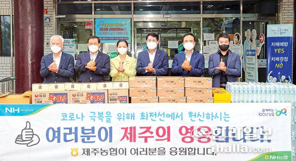 제주농협은 30일 제주시청서 제주보건소 선별진료소 의료진과 지원 인력들에게 격려와 감사의 뜻을 담은 격려 물품을 전달했다.