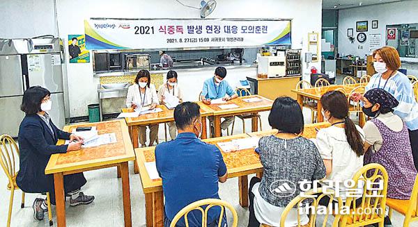 서귀포시는 대규모 식중독 발생 시 현장 신속대응 역량강화를 위해 지난달 27일 서귀포시 청사 내 구내식당에서 식중독 발생 현장 대응 모의훈련을 실시했다.