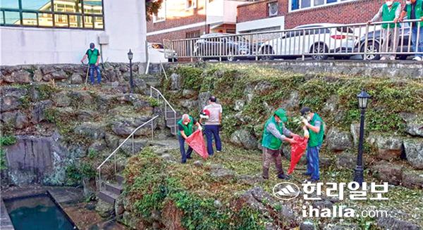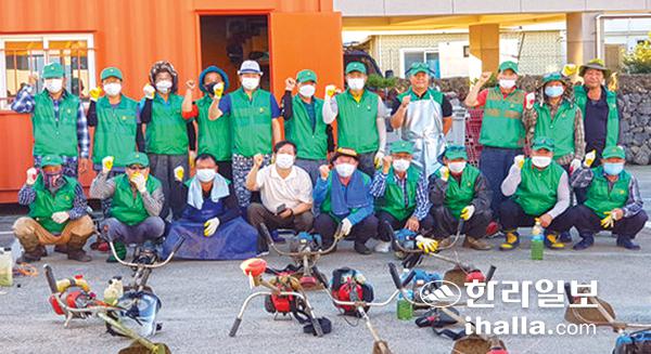 제주시 도두동주민센터와 새마을지도자도두동협의회(회장 박영언)는 지난 29일 회원 20여 명이 참여한 가운데 주요도로변 및 소공원 풀베기를 실시했다.