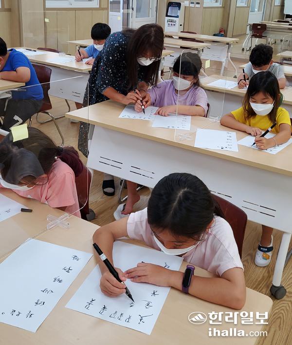 학생들은 매주 수요일마다 학년별로 1시간씩 10주 동안에 걸쳐 캘리그라피 전문가인 양미석 강사와 함께 '손으로 그린 문자'인 캘리그라피 예술 수업을 받게 된다.