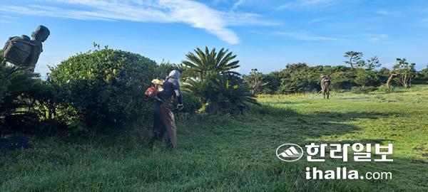 서귀포시 남원읍은 지난달 31일과 지난 1일 이틀간 큰엉해안경승지 올레길과 체육공원에서 풀베기 등 환경정비를 실시했다.