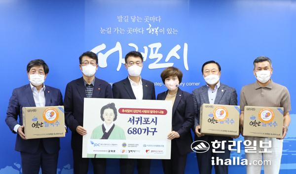 재단법인 김만덕재단(이사장 양원찬)은 지난 1일 서귀포시를 방문해 저소득층 가정 680가구에 지원할 쌀국수 680박스를 기탁했다.