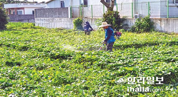 제주시 이호동과 이호동주민자치위원회(위원장 김영택)는 최근 이웃돕기 성금마련을 위해 지난 5월에 재배한 고구마 300여평 부지에서 잡초 등을 정비했다. 이호동은 신청사 부지 및 임대 부지를 활용해 제철작물을 판매해 얻은 수익금으로 어려운 이웃돕기 성금을 마련하고 있다.