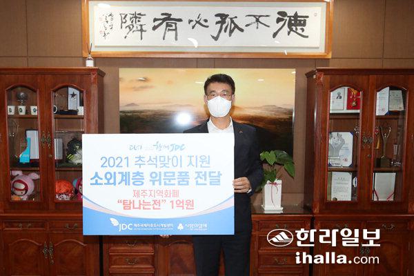 제주국제자유도시개발센터(JDC)는 추석맞이 도내 소외계층에 제주지역화폐 '탐나는전' 1억원을 지난 1일 제주사회복지공동모금회(회장 김남식)에 전달했다.