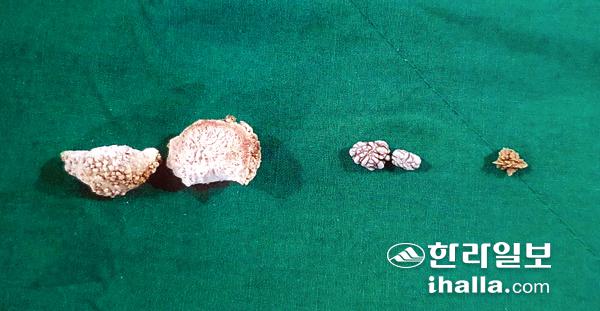 빗짱이 방광에서 나온 결석.