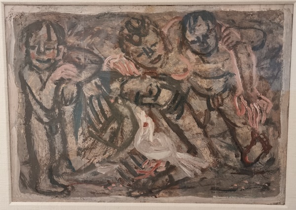 삼성가 기증작품 중 하나인 양면화 앞면 '비둘기와 아이들'. 사진=이중섭미술관 제공