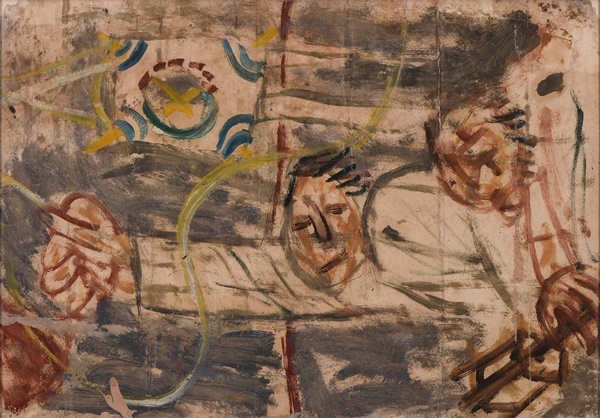 양면화 뒷면에 그려진 '연날리기'. 사진=이중섭미술관 제공