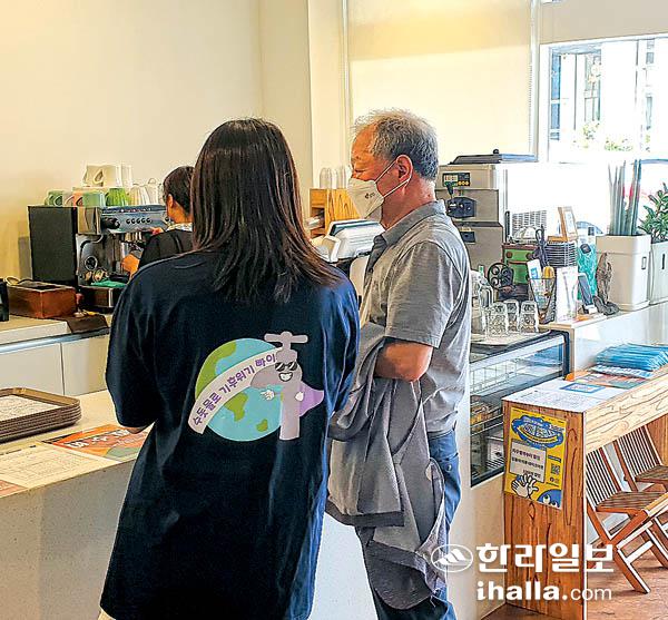 제주시 중앙로에 위치한 지구별약수터(개인 컵이 있는 사람이면 안전한 식수를 제공해 주는 환경캠페인을 진행하고 있는 카페나 매장) 3곳에서 열린 이번 행사에는 인근 직장인과 지역민 등 약 160명이 참여했다.