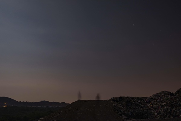 전시장 2층에 있는 방 안 의자에 잠시 앉았다. 사진 속 별빛 반짝이는 푸르스름한 풍경 아래 익숙한 능선은 마치 오름 같았다. 실제론 쓰레기들이 모여 야트막한 산의 형상을 이룬 거였다. 멀리서 보면 치유의 공간이었으나, 가까이서 보니 상처로 곪아가는 현장이었다.
