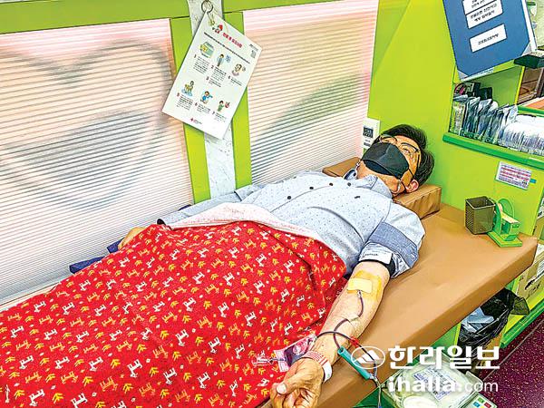 농협제주지역본부(본부장 강승표)는 코로나19가 장기화되면서 헌혈자 급감으로 어려움을 겪고 있는 혈액 수급에 힘을 보태기 위해 7일 지역본부 주차장에서 대한적십자사 제주혈액원(원장 박은영)과 합동으로 '범제주농협 사랑의 헌혈운동'을 실시했다.