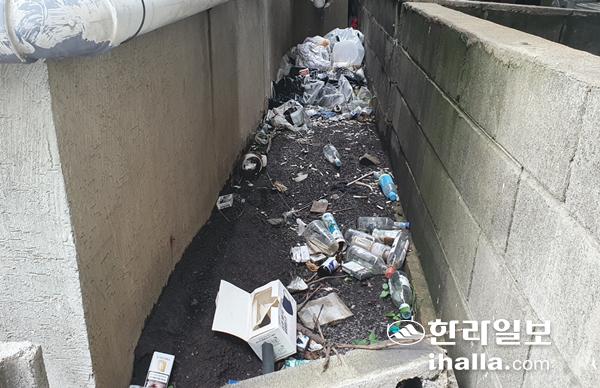 8일 제주시내 곳곳에선 쓰레기가 무단투기돼 있는 모습을 쉽게 발견할 수 있다.