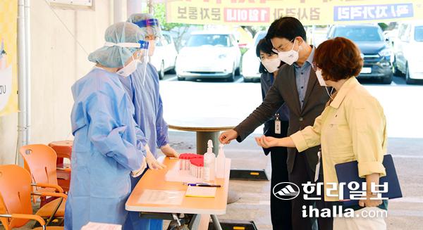 이석문 제주특별자치도교육감은 지난 8~9일 제주도 보건환경연구원과 권역별 선별진료소를 운영하는 도내 보건소를 방문, 직원들을 만나 감사와 격려를 전했다. 이 자리에서 이 교육감은 "추석 설렘도 뒤로하고 코로나19 방역 최전선에서 노고와 헌신을 다해줘서 진심으로 감사하다"면서 "하루빨리 코로나19가 종식돼 직원들도 평범한 일상을 되찾길 바란다"고 밝혔다.