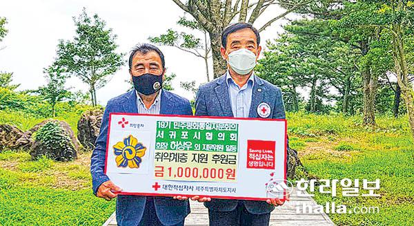 제19기 민주평화통일자문회의 서귀포시협의회(회장 허상우)는 지난 8일 대한적십자사제주도지사(회장 오홍식)에 취약계층 지원을 위한 후원금 100만원을 기탁했다.