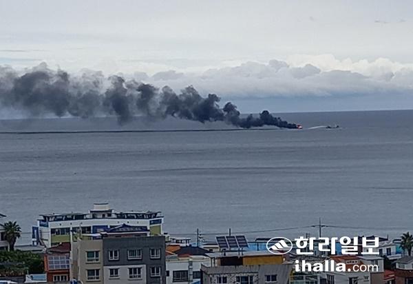 10일 오후 1시25분쯤 제주시 삼양동 삼양포구 앞 2㎞ 해상에서 있던 모터보트 A호(19t·승선원 2명)에 화재가 발생했다는 신고가 접수됐다. 독자제공