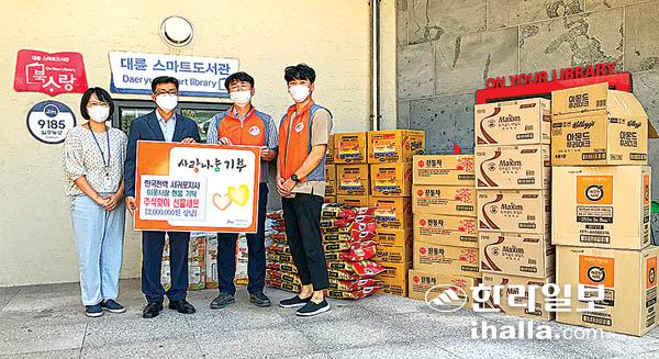 한국전력공사 서귀포지사(이사장 홍웅기)는 지난 9일 대륜동주민센터를 방문해 코로나19로 힘든 어려운 이웃에 전달해 달라며 쌀, 라면 등 200만원 상당의 물품을 기부했다. 오승언 대륜동장은 "코로나19로 인해 모두 힘든 상황에 이렇게 도움을 주신 분들의 마음과 정성을 지역의 이웃들에게 잘 전달하겠다"고 말했다.