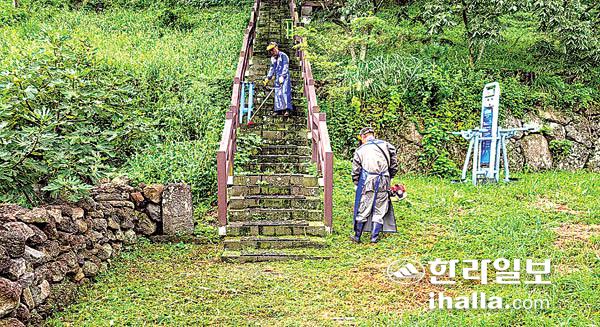 (재)제주문화유산연구원 제주자연문화재돌봄센터(센터장 강영제)는 지난 6일 '제주특별자치도 기념물 금덕 무환자나무 및 팽나무 군락'에서 문화재 돌봄 활동을 실시했다. 이날 문화재돌봄 활동 참가자들은 수령이 오래된 나무 주변에 무성한 잡초 베기, 안내판 청소 등에 나섰다.