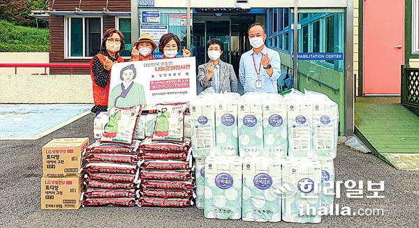 제주김만덕기념관과 제주만덕로타리클럽은 지난 11일 추석을 맞이해 중증장애인요양시설 창암재활원에 방문하여 쌀 300㎏, 화장지 30봉 등 130만원 상당의 물품을 후원했다.