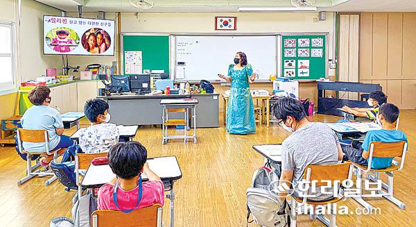 온평초등학교(교장 강태심)는 지난 8일 제주국제연구센터·제주국제개발협력센터 주관의 찾아가는 세계시민교육 프로그램에 참여했다. 온평초 학생들은 세계시민으로서 갖춰야 할 자세와 각 나라의 문화 다양성을 체험했다.
