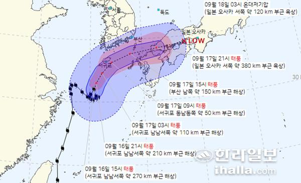 태풍이 다가오면서 제주는 16일 오후부터 비가 시작되는 등 본격 영향권에 접어들었다. 17일 오전까지 시간당 50∼80㎜ 이상의 매우 강한 비가 내릴 것으로 보여 비 피해가 없도록 사전에 철저하게 대비해야 한다.
