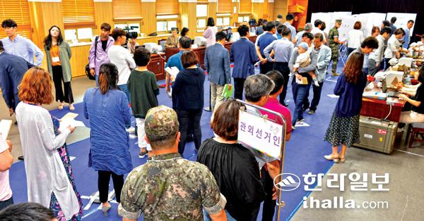 2018년 지방선거에서 제주 지역 유권자들이 사전 투표를 하고 있다. /사진=한라일보DB