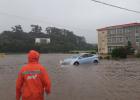 태풍 '찬투'가 제주를 강타한 17일 오전 제주시 용담2동의 저지대 건물이 침수돼 소방대원들이 배수 작업을 벌이고 있다. 연합뉴스