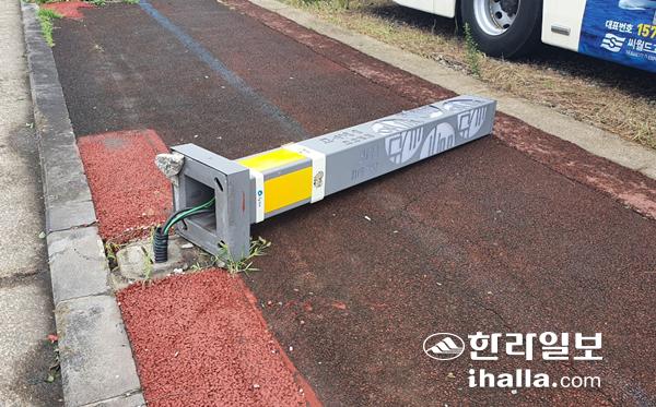 17일 제주시내 용담동의 한 도로에서 간판이 쓰러져 있다.