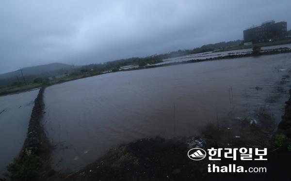 17일 성산읍의 한 월동무 밭이 물에 잠겨 있다.