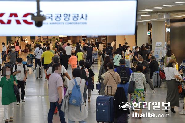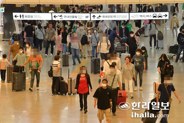 20일 제주국제공항에는 연휴를 즐기려는 관광객과 귀성객 3만8000여 명이 찾아 쾌청한 제주의 가을 하늘을 배경으로 기념사진을 찍었다.