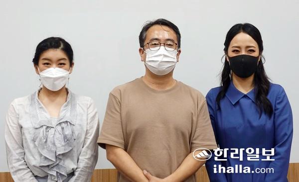 창작 뮤지컬 '이중섭의 메모리' 공연에 참여한 제주 출신 배우와 제작자. 왼쪽부터 배우 김재은, 작곡과 극본을 맡은 윤정인 대표, 배우 정유라. 사진=진선희기자