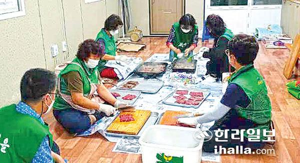 제주시 일도1동 새마을부녀회(회장 윤미영)는 지난 16일 결연을 맺은 독거노인 및 저소득가구에 반찬을 전달했다. 부녀회원들은 이날 코로나19로 힘들어진 독거노인과 저소득층을 위로하고 건강과 활력을 되찾아주기 위해 계절반찬을 전달하면서 어려운 이웃과 더불어 살아가는 나눔 실천 분위기 조성에 앞장섰다.
