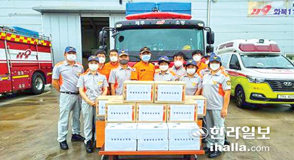 제주소방서 화북119센터(센터장 강갑수)와 화북 남·여 의용소방대(남성대장 이치우·여성대장 오춘희)는 지난 16일 추석 명절을 맞아 관내 불우이웃 10가구를 방문, 생필품 등 위문품을 전달했다.