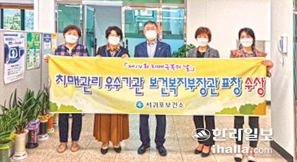 서귀포보건소는 최근 제14회 치매극복의 날 기념 행사에서 치매극복을 위해 노력하고 사회적 공감대 확산에 기여한 공로를 인정받아 보건복지부장관 기관표창을 받았다.