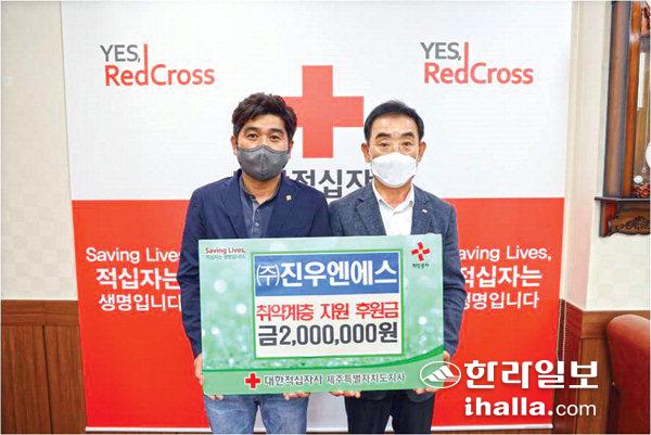 (주)진우엔에스(대표 양태복)은 지난 24일 대한적십자사제주특별자치도지사(회장 오홍식)를 방문해 취약계층 지원을 위한 후원금 200만원을 전달했다.