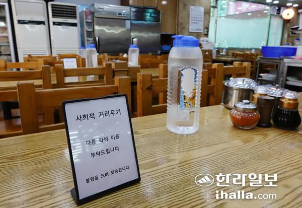 거리두기로 텅 빈 식당. 한라일보DB