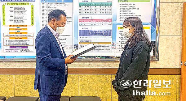 한림공업고등학교(교장 강순구)는 지난 27일 교장실에서 학생 2명에게 각 50만원씩의 '제주특별자치도 간호사회 장학금'을 전달했다.