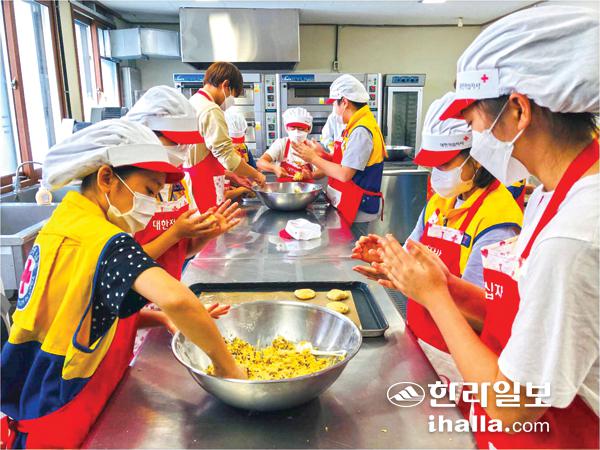 이날 RCY 단원들은 취약계층 어르신과 청소년들에게 사랑을 전하기 위해 쿠키 200개와 단판빵 200개를 만들어 지역아동센터와 인효원에 전달했다.