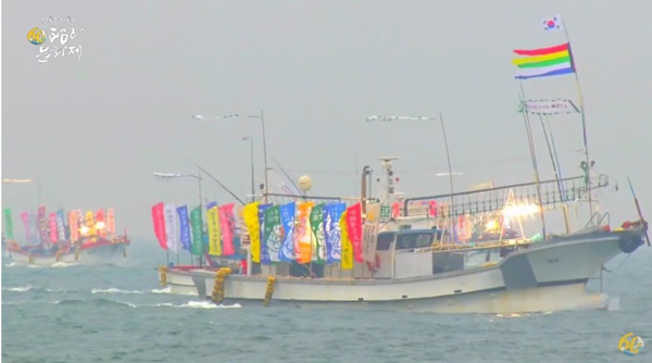 10일 폐막 행사에서 상영된 해상 퍼레이드 장면. 9일 제주항 어선부두~다끄네포구를 왕복하며 진행한 퍼레이드를 녹화한 영상이다.