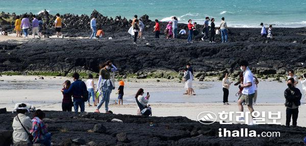12일 제주시 한림읍 협재해수욕장에는 많은 관광객들이 찾아 제주의 가을바다를 즐기고 있다. 강희만기자