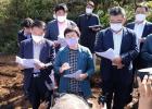 제주특별자치도의회 환경도시위원회가 15일 불법 건축 허가 논란이 일고 있는 국토교툥부의 제주남부 항공 레이더 건설 예정지인 서귀포시 색달동 1100고지 인근 삼형제큰오름을 방문해 공사 중지를 요청했다. 이상민 기자.